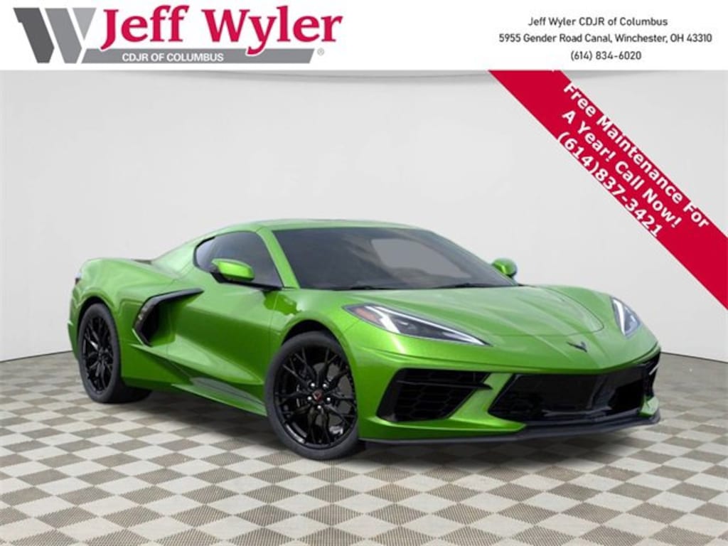 Jeff Wyler Columbus Auto Mall is honored to offer this attractive 2026 Chevrolet Corvette Stingray in Roswell Green Metallic. Well equipped with: Battery Protection Package, Contoured Liner Protection Package (All-Weather Floor Liners with Jake Logo and Contoured Cargo Area Liners with Jake Logo), Coupe Engine Appearance Package (Engine Lighting and Engine Specification Plaque), 10 Speakers, 4-Wheel Disc Brakes, 8-Way Power Driver Seat Adjuster, 8-Way Power Passenger Seat Adjuster, ABS brakes, Air Conditioning, Alloy wheels, AM/FM radio: SiriusXM, Auto High-beam Headlights, Auto-dimming Rear-View mirror, Automatic temperature control, Brake assist, Bumpers: body-color, Carbon Flash Metallic-Painted High Wing Spoiler, Compass, Dark Stealth Front Crossed Flags Emblem, Delay-off headlights, Driver door bin, Driver vanity mirror, Dual front impact airbags, Dual front side impact airbags, Electronic Stability Control, Emergency communication system: OnStar and Chevrolet connected services capable, Four wheel independent suspension, Front anti-roll bar, Front Bucket Seats, Front Center Armrest, Front dual zone A/C, Front reading lights, Fully automatic headlights, GT1 Bucket Seats, Heated door mirrors, Illuminated entry, Leather Shift Knob, Leather steering wheel, Low tire pressure warning, Mulan Leather Seating Surfaces with Perforated Inserts, Navigation System, Occupant sensing airbag, Outside temperature display, Overhead console, Panic alarm, Passenger door bin, Passenger vanity mirror, Performance Exhaust with Stainless-Steel Tips, Power door mirrors, Power driver seat, Power passenger seat, Power steering, Power windows, Premium audio system: Chevrolet Infotainment 3 Plus, Radio data system, Radio: Infotainment System with Google Built-in, Rear anti-roll bar, Rear window defroster, Remote keyless entry, Speed control, Speed-sensing steering, Sport steering wheel, Steering wheel mounted audio controls, Tachometer, Telescoping steering wheel, Tilt steering wheel, Traction control, Trip computer, Turn signal indicator mirrors, Variably intermittent wipers, Voltmeter, Wheels: 19 x 8.5 Front & 20 x 11 Rear Gloss Black, and Wheels: 19 x 8.5 Front and 20 x 11 Rear 5-Split-Spoke.Wyler Family First Package Includes: NanoCure Appearance Protection: Exterior & Interior Chemical Sealant Applied to Protect Against Environmental Hazards (7 Year Warranty Coverage). Pulse- Rear End Collision Avoidance System Theft Deterrent Strategy gives you 5 Years of Coverage against vehicle theft, Offering up to a $5,000 benefit.