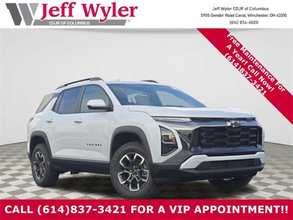 Jeff Wyler Columbus Auto Mall is proud to offer this good-looking 2026 Chevrolet Equinox ACTIV in Polar White Tricoat. Well equipped with: Floor Liner Package (LPO) (All-Weather Floor Liners (LPO), Cargo Mat, and Second Row All-Weather Mat (LPO)), Preferred Equipment Group XDB, 2-Way Power Driver Lumbar Control Seat Adjuster, 4-Wheel Disc Brakes, 5.81 Final Drive Axle Ratio, 6 Speakers, ABS brakes, Air Conditioning, Alloy wheels, AM/FM radio: SiriusXM, Auto High-beam Headlights, Automatic temperature control, Brake assist, Bumpers: body-color, Compass, Delay-off headlights, Driver 8-Way Power Seat Adjuster, Driver door bin, Driver vanity mirror, Dual front impact airbags, Dual front side impact airbags, Electronic Stability Control, Emergency communication system: OnStar and Chevrolet connected services capable, Four wheel independent suspension, Front anti-roll bar, Front Bucket Seats, Front Center Armrest, Front dual zone A/C, Front Passenger 4-Way Manual Seat Adjuster, Front reading lights, Fully automatic headlights, Garage door transmitter, Heated door mirrors, Heated Driver & Front Passenger Seats, Heated front seats, Heated steering wheel, Illuminated entry, Low tire pressure warning, Memory seat, Navigation System, Occupant sensing airbag, Outside temperature display, Overhead airbag, Overhead console, Panic alarm, Passenger door bin, Passenger vanity mirror, Power door mirrors, Power driver seat, Power Liftgate, Power steering, Power windows, Premium audio system: Chevrolet Infotainment 3 Plus, Radio data system, Radio: 11.3 Diagonal Advanced Color LCD Display, Rain sensing wipers, Rear anti-roll bar, Rear reading lights, Rear seat center armrest, Rear window defroster, Rear window wiper, Remote keyless entry, Security system, SiriusXM w/360L Trial Subscription, Speed control, Speed-sensing steering, Split folding rear seat, Spoiler, Steering wheel mounted audio controls, Sueded Microfiber Seat Trim, Tachometer, Telescoping steering wheel, Tilt steering wheel, Traction control, Trip computer, Variably intermittent wipers, and Wheels: 17 Dark Android Machined-Face Aluminum. 26/28 City/Highway MPGWyler Family First Package Includes: NanoCure Appearance Protection: Exterior & Interior Chemical Sealant Applied to Protect Against Environmental Hazards (7 Year Warranty Coverage). Pulse- Rear End Collision Avoidance System Theft Deterrent Strategy gives you 5 Years of Coverage against vehicle theft, Offering up to a $5,000 benefit. Price does not include Tax, Title, License and Documentary Fee$500 - GM Military Cash Allowance Program. Exp. 01/04/2027 $500 - GM Rewards Card Sales Sign Up and Spend Offer. Exp. 06/30/2026