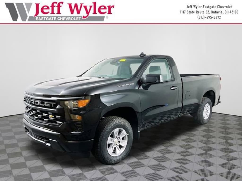 Priced below KBB Fair Purchase Price! Black 2026 Chevrolet Silverado 1500 WT EcoTec3 5.3L V8 4WD 10-Speed Automatic 15/19 City/Highway MPG Jeff Wyler Eastgate Auto Mall is pleased to offer this wonderful 2026 Chevrolet Silverado 1500 WT in Black. Well equipped with: Liner Protection Package (LPO) (All-Weather Floor Liner and Rear Wheel House Liners), Preferred Equipment Group 1WT (3.5 Monochromatic Display Driver Info Center, 4-Way Manual Driver Seat Adjuster, 40/20/40 Front Split Bench Seat, Black (Semi-Gloss) Front Bumper, Black (Semi-Gloss) Rear Bumper, Bluetooth® For Phone, Electronic Cruise Control, Front Frame-Mounted Black Recovery Hooks, HD Rear Vision Camera, Heated Power-Adjustable Outside Mirrors, Inside Rearview Mirror with Tilt, Locking Tailgate, Manual Tailgate Function with No EZ Lift, Manual Tilt Wheel Steering Column, OnStar Services Capable, Power Front Windows with Driver Express Up/Down, Power Front Windows with Passenger Express Down, Remote Keyless Entry, Rubberized-Vinyl Floor Covering, SiriusXM Delete, Solar Absorbing Tinted Glass, Standard Tailgate, Teen Driver, Tire Pressure Monitoring System, Vinyl Seat Trim, Wheels: 17 x 8 Ultra Silver Painted Steel, and Wi-Fi Hot Spot Capable), Standard Suspension Package, 170 Amp Alternator, 2 Speakers, 2-Speaker Audio System, 220 Amp Alternator, 4-Wheel Disc Brakes, ABS brakes, Air Conditioning, Apple CarPlay/Android Auto, Auto High-beam Headlights, Auto-Locking Rear Differential, Automatic Emergency Braking, Auxiliary External Transmission Oil Cooler, Brake assist, Chevytec Spray-on Black Bedliner, Color-Keyed Carpeting Floor Covering, Compass, Delay-off headlights, Driver door bin, Dual front impact airbags, Dual front side impact airbags, Electronic Stability Control, Emergency communication system: OnStar, External Engine Oil Cooler, Following Distance Indicator, Forward Collision Alert, Front anti-roll bar, Front Center Armrest w/Storage, Front Pedestrian Braking, Front reading lights, Front Rubberized Vinyl Floor Mats, Front wheel independent suspension, Fully automatic headlights, Heated door mirrors, Illuminated entry, IntelliBeam Automatic High Beam on/Off, Lane Keep Assist with Lane Departure Warning, Low tire pressure warning, Occupant sensing airbag, Outside temperature display, Overhead airbag, Overhead console, Panic alarm, Passenger door bin, Passenger vanity mirror, Power door mirrors, Power steering, Power windows, Premium audio system: Chevrolet Infotainment 3, Radio data system, Radio: Chevrolet Infotainment 3 System, Rear reading lights, Rear step bumper, Remote keyless entry, Speed control, Speed-sensing steering, Tachometer, Tilt steering wheel, Traction control, Trip computer, Variably intermittent wipers, Voltmeter, and Wheels: 17 x 8 Bright Silver Painted Aluminum. Price includes: $4250 - Chevrolet Consumer Cash Program. Exp. 04/30/2026 $500 - Chevrolet Bonus Cash. Exp. 04/30/2026