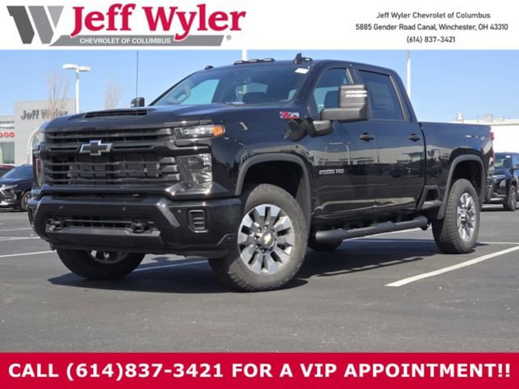 Jeff Wyler Columbus Auto Mall is pleased to offer this reliable 2026 Chevrolet Silverado 2500HD Custom in Black. Well equipped with: Custom Convenience Package (10-Way Power Driver Seat Adjuster with Lumbar, 120-Volt Bed Mounted Power Outlet, 120-Volt Interior Power Outlet, Dual Rear USB Ports (charge Only), Electric Rear-Window Defogger, EZ Lift Power Lock and Release Tailgate, LED Cargo Area Lighting, Remote Vehicle Starter System, and Unauthorized Entry Theft-Deterrent System), Custom Value Package (Auto-Dimming Inside Rear-View Mirror and Heated and Auto-Dimming Vertical Trailering Mirrors), CX Safety Package (Lane Change Alert with Side Blind Zone Alert, Rear Cross Traffic Alert, and Ultrasonic Front and Rear Park Assist), Preferred Equipment Group 1CX (170 Amp Alternator, 2-Speed Electronic Shift Transfer Case, 3.5 Diagonal Monochromatic Display DIC, Black Mirror Caps, Bluetooth® For Phone, Chevrolet Connected Access Capable, Color-Keyed Carpeting Floor Covering, Compass, Deep-Tinted Glass, Durabed Pickup Bed, Electronic Cruise Control with Set and Resume Speed, Front Rubberized Vinyl Floor Mats, HD Rear Vision Camera, Heated Vertical Trailering Mirrors, Locking Tailgate, Manual Tailgate Function with No EZ Lift, Manual Tilt-Wheel Steering Column, OnStar Services Capable, Power Door Locks, Power Front Windows with Driver Express Up/Down, Power Front Windows with Passenger Express Down, Power Rear Windows with Express Down, Push Button Start, Rear 60/40 Folding Bench Seat (folds Up), Rear Rubberized Vinyl Floor Mats, Remote Keyless Entry, SiriusXM with 360L Trial Subscription, Standard Tailgate, Wheels: 20 10-Spoke Machined Aluminum, Wi-Fi Hotspot Capable, and Wireless Phone Projection), Snow Plow Prep/Camper Package (220 Amp Alternator), Suspension Package, Z71 Off-Road Package (Hill Descent Control and Off-Road Suspension), 10-Speed Automatic, 4WD, Jet Black Cloth, 4-Wheel Disc Brakes, 4 Round Black Assist Steps, 6 Speakers, 6-Speaker Audio System, 720 Cold-Cranking Amps Heavy-Duty Battery, ABS brakes, Air Conditioning, Alloy wheels, AM/FM radio: SiriusXM with 360L, Apple CarPlay/Android Auto, Auto High-beam Headlights, Black Chevytec Spray-on Bedliner, Brake assist, Cloth Seat Trim, Delay-off headlights, Driver door bin, Dual front impact airbags, Dual front side impact airbags, Electronic Stability Control, Emergency communication system: OnStar, Engine Block Heater, Exhaust Brake, Front 40/20/40 Split-Bench Seats with Lockable Storage, Front anti-roll bar, Front Black Bowtie Emblem, Front Center Armrest w/Storage, Front reading lights, Front wheel independent suspension, Fully automatic headlights, Heated door mirrors, Illuminated entry, LED Smoked Amber Roof Marker Lamps, Low tire pressure warning, Occupant sensing airbag, Outside temperature display, Overhead airbag, Overhead console, Panic alarm, Passenger door bin, Passenger vanity mirror, Power door mirrors, Power steering, Power windows, Premium audio system: Chevrolet Infotainment 3, Radio: Chevrolet Infotainment 3 System, Rear reading lights, Rear step bumper, Remote keyless entry, Speed control, Split folding rear seat, Tachometer, Tilt steering wheel, Traction control, Trip computer, Turn signal indicator mirrors, Variably intermittent wipers, Voltmeter, and Winter Grille Cover.