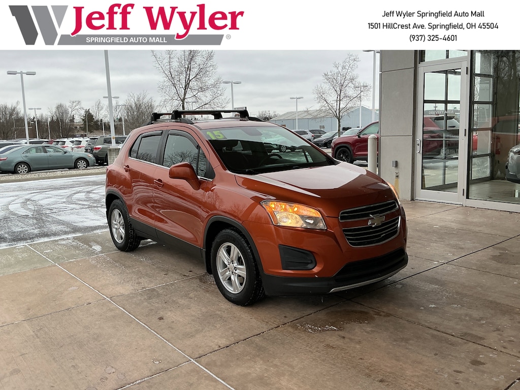 Jeff Wyler Springfield Auto Mall is excited to offer this wonderful-looking 2015 Chevrolet Trax LT in Orange Rock Metallic. Well equipped with: LT Plus Package (3-Spoke Leather-Wrapped Steering Wheel, 6-Way Power Driver Seat Adjuster, Deluxe Cloth/Leatherette Seat Trim, and Rear Park Assist w/Sensor Indicator), Preferred Equipment Group 1LT, Protection Package (Front & Rear All Weather Floor Mats (LPO) and Front & Rear Custom Molded Splash Guards), Sun & Sound Package (Bose Premium 7-Speaker Audio System Feature and Power Sliding Sunroof), 16" Aluminum Wheels, 2-Way Manual Front Passenger Seat Adjuster, 3.53 Final Drive Axle Ratio, 6 Speakers, ABS brakes, Air Conditioning, Alloy wheels, AM/FM radio: SiriusXM, Brake assist, Bumpers: body-color, Compass, Delay-off headlights, Deluxe Cloth Seat Trim, Driver door bin, Driver vanity mirror, Driver's Seat Mounted Armrest, Dual front impact airbags, Dual front side impact airbags, Electronic Stability Control, Emergency communication system: OnStar Directions & Connections, Exterior Parking Camera Rear, Front anti-roll bar, Front Bucket Seats, Front Bucket Seats w/Driver Power Lumbar, Front reading lights, Front wheel independent suspension, Fully automatic headlights, Heated door mirrors, Illuminated entry, Knee airbag, Low tire pressure warning, Occupant sensing airbag, Outside temperature display, Overhead airbag, Panic alarm, Passenger door bin, Passenger vanity mirror, Power door mirrors, Power steering, Power windows, Premium audio system: Chevrolet MyLink, Radio data system, Radio: Chevrolet MyLink AM/FM Stereo, Rear seat center armrest, Rear side impact airbag, Rear window defroster, Rear window wiper, Remote keyless entry, Roof rack: rails only, Security system, Speed control, Speed-sensing steering, Split folding rear seat, Spoiler, Steering wheel mounted audio controls, Tachometer, Telescoping steering wheel, Tilt steering wheel, Traction control, Trip computer, and Variably intermittent wipers. Awards: * 2015 IIHS Top Safety Pick * 2015 KBB.com 10 Best Used Subcompact SUVs Under $15,000 * 2015 KBB.com 10 Tech-Savviest Cars Under $20,000 Reviews: * Maybe youâre on a budget or just starting a family the Chevrolet Trax is small in stature, but it can still haul its fair share of passengers and cargo. Source: KBB.com * Easy to maneuver in the city; respectable passenger space for its size; plenty of storage slots; lots of standard equipment for the money. Source: EdmundsAsk about available certifications. Used vehicles 10 years of age or newer with less than 100,000 miles are eligible for the Wyler Assurance Program, but eligible vehicles must pass our reconditioning process and multi-point inspection. Provided the vehicle passes inspection, vehicles will be eligible for the 6 month/6,000 mile limited warranty. The 6 month/6,000 mile limited warranty is NOT available on AS-IS vehicles, wholesale vehicles, lease buyback/pass-thru vehicles or un-inspected vehicles. Note that this program can also apply to vehicles where the remaining factory coverage is less than 6 months or 6,000 miles. Please check the Federal Trade Commission (FTC) Buyers guide on the vehicle for full details as to whether or not warranty coverage may apply. Contact Dealer for additional details. The Wyler Assurance 6 month/6,000 Mile limited warranty ends 6 months from the date of the Retail Purchase Agreement (BUYERS ORDER) or when the vehicle's odometer registers 6,000 additional miles to the mileage listed on the BUYERS ORDER, whichever comes first. Your Deductible - The warranty holder on your contract pays the first $100 of each covered repair.