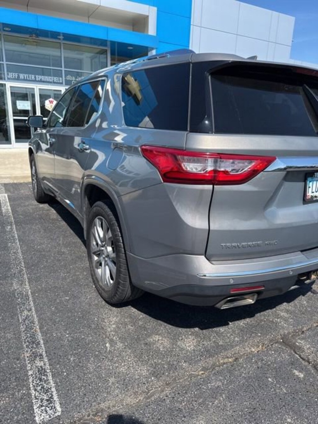 Jeff Wyler Springfield Auto Mall is excited to offer this wonderful-looking 2019 Chevrolet Traverse Premier in Pepperdust Metallic. Well equipped with: Front License Plate Bracket Mounting Package, Preferred Equipment Group 1LZ, 10 Speakers, 3.49 Axle Ratio, 3rd row seats: split-bench, 4-Wheel Disc Brakes, 7-Passenger Seating (2-2-3 Seating Configuration), ABS brakes, Air Conditioning, Alloy wheels, AM/FM radio: SiriusXM, Apple CarPlay/Android Auto, Auto High-beam Headlights, Auto-dimming door mirrors, Auto-dimming Rear-View mirror, Automatic temperature control, Bose Premium 10-Speaker Audio System Feature, Brake assist, Bumpers: body-color, Compass, Delay-off headlights, Driver door bin, Driver vanity mirror, Dual front impact airbags, Dual front side impact airbags, Dual SkyScape 2-Panel Power Sunroof, Electronic Stability Control, Emergency communication system, Four wheel independent suspension, Front anti-roll bar, Front Bucket Seats, Front Center Armrest, Front dual zone A/C, Front fog lights, Front reading lights, Fully automatic headlights, Garage door transmitter, Heated door mirrors, Heated front seats, Heated rear seats, Heated steering wheel, Heavy-Duty Cooling System, Illuminated entry, Low tire pressure warning, Memory seat, Navigation System, Occupant sensing airbag, Outside temperature display, Overhead airbag, Overhead console, Panic alarm, Passenger door bin, Passenger vanity mirror, Perforated Leather-Appointed Seat Trim, Power door mirrors, Power driver seat, Power Liftgate, Power passenger seat, Power steering, Power windows, Premium audio system: Chevrolet MyLink, Radio data system, Radio: Chevrolet Infotainment AM/FM Stereo w/Navigation, Rear air conditioning, Rear anti-roll bar, Rear reading lights, Rear window defroster, Rear window wiper, Remote keyless entry, Roof rack: rails only, Security system, SiriusXM Radio, Speed control, Speed-sensing steering, Spoiler, Steering wheel memory, Steering wheel mounted audio controls, Tachometer, Telescoping steering wheel, Tilt steering wheel, Traction control, Trip computer, Turn signal indicator mirrors, Variably intermittent wipers, Ventilated front seats, Voltmeter, and Wheels: 20 Argent Metallic Machine Faced Aluminum. Awards:* 2019 KBB.com 12 Best Family Cars Ask about available certifications. Used vehicles 10 years of age or newer with less than 100,000 miles are eligible for the Wyler Assurance Program, but eligible vehicles must pass our reconditioning process and multi-point inspection. Provided the vehicle passes inspection, vehicles will be eligible for the 6 month/6,000 mile limited warranty. The 6 month/6,000 mile limited warranty is NOT available on AS-IS vehicles, wholesale vehicles, lease buyback/pass-thru vehicles or un-inspected vehicles. Note that this program can also apply to vehicles where the remaining factory coverage is less than 6 months or 6,000 miles. Please check the Federal Trade Commission (FTC) Buyers guide on the vehicle for full details as to whether or not warranty coverage may apply. Contact Dealer for additional details. The Wyler Assurance 6 month/6,000 Mile limited warranty ends 6 months from the date of the Retail Purchase Agreement (BUYERS ORDER) or when the vehicle's odometer registers 6,000 additional miles to the mileage listed on the BUYERS ORDER, whichever comes first. Your Deductible - The warranty holder on your contract pays the first $100 of each covered repair.
