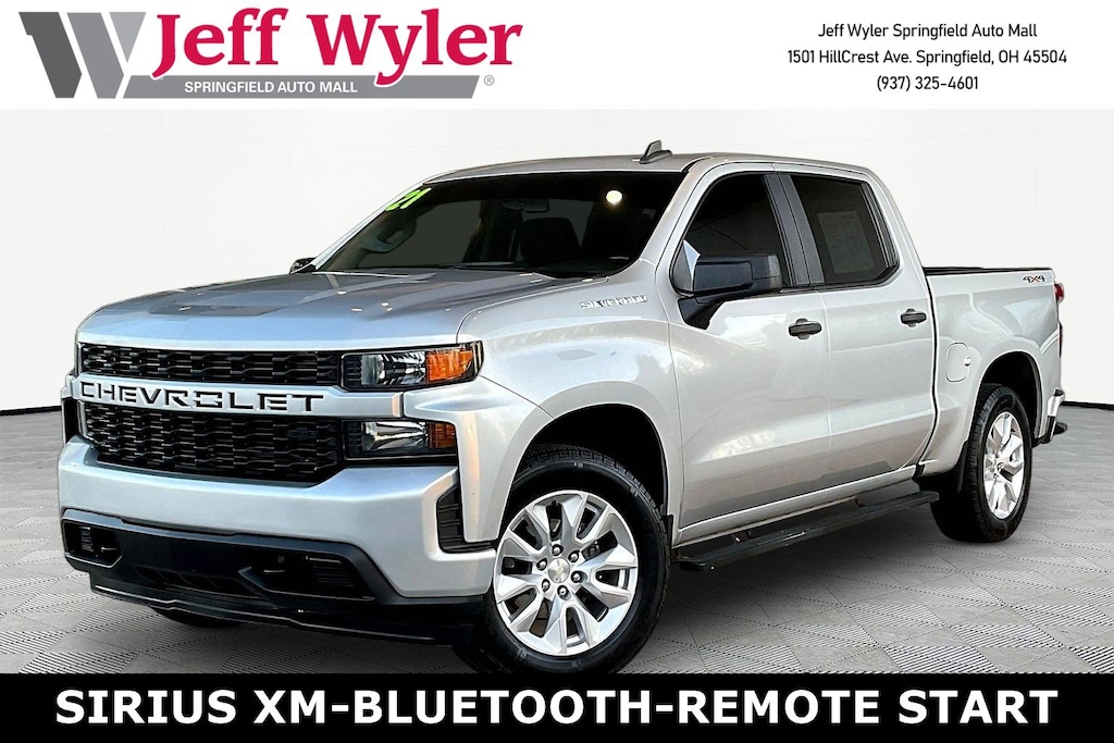 Jeff Wyler Springfield Auto Mall is excited to offer this superb-looking 2021 Chevrolet Silverado 1500 Custom in Silver Ice Metallic. Well equipped with: Custom Convenience Package (Electric Rear-Window Defogger, EZ Lift Power Lock & Release Tailgate, LED Cargo Area Lighting, Remote Vehicle Starter System, and Theft Deterrent System (Unauthorized Entry)), Custom Value Package, Infotainment Package (4G LTE Wi-Fi Hot Spot Capable, Chevrolet Connected Access Capable, OnStar & Chevrolet Connected Services Capable, and SiriusXM Radio), Preferred Equipment Group 1CX (170 Amp Alternator, 3.5" Diagonal Monochromatic Display, Bluetooth® For Phone, Body Color Grille, Color-Keyed Carpeting Floor Covering, Compass, Deep-Tinted Glass, Electronic Cruise Control, Front Frame-Mounted Black Recovery Hooks, Front Rubberized Vinyl Floor Mats, Manual Tilt Wheel Steering Column, Power Door Locks, Power Front Windows w/Driver Express Up/Down, Power Front Windows w/Passenger Express Down, Power Rear Windows w/Express Down, Rear 60/40 Folding Bench Seat (Folds Up), Rear Rubberized-Vinyl Floor Mats, Remote Keyless Entry, and Standard Tailgate), Trailering Package (Hitch Guidance), 120-Volt Bed Mounted Power Outlet, 120-Volt Instrument Panel Power Outlet, 220 Amp Alternator, 3.42 Rear Axle Ratio, 4-Wheel Disc Brakes, 40/20/40 Front Split Bench Seat, 6 Speakers, ABS brakes, Air Conditioning, All-Weather Floor Liner (LPO), Alloy wheels, AM/FM radio: SiriusXM, Apple CarPlay/Android Auto, Auto-Locking Rear Differential, Automatic Stop/Start, Brake assist, Bumpers: body-color, Cloth Seat Trim, Delay-off headlights, Driver door bin, Driver vanity mirror, Dual front impact airbags, Dual front side impact airbags, Electronic Stability Control, Front anti-roll bar, Front Black Bowtie Emblem (LPO), Front Center Armrest w/Storage, Front reading lights, Front wheel independent suspension, Fully automatic headlights, Heated door mirrors, Heavy Duty Suspension, Illuminated entry, Integrated Trailer Brake Controller, Low tire pressure warning, Occupant sensing airbag, Outside temperature display, Overhead airbag, Overhead console, Panic alarm, Passenger door bin, Passenger vanity mirror, Polished Exhaust Tip, Power door mirrors, Power steering, Power windows, Premium audio system: Chevrolet Infotainment 3, Radio data system, Radio: Chevrolet Infotainment 3 System, Rear reading lights, Rear step bumper, Rear window defroster, Remote keyless entry, Security system, Single-Zone Manual/Semi-Automatic Air Conditioning, Speed control, Speed-sensing steering, Split folding rear seat, Tachometer, Tilt steering wheel, Traction control, Trip computer, Variably intermittent wipers, Voltmeter, and Wheels: 20" x 9" Bright Silver Painted Aluminum. Ask about available certifications. Used vehicles 10 years of age or newer with less than 100,000 miles are eligible for the Wyler Assurance Program, but eligible vehicles must pass our reconditioning process and multi-point inspection. Provided the vehicle passes inspection, vehicles will be eligible for the 6 month/6,000 mile limited warranty. The 6 month/6,000 mile limited warranty is NOT available on AS-IS vehicles, wholesale vehicles, lease buyback/pass-thru vehicles or un-inspected vehicles. Note that this program can also apply to vehicles where the remaining factory coverage is less than 6 months or 6,000 miles. Please check the Federal Trade Commission (FTC) Buyers guide on the vehicle for full details as to whether or not warranty coverage may apply. Contact Dealer for additional details. The Wyler Assurance 6 month/6,000 Mile limited warranty ends 6 months from the date of the Retail Purchase Agreement (BUYERS ORDER) or when the vehicle's odometer registers 6,000 additional miles to the mileage listed on the BUYERS ORDER, whichever comes first. Your Deductible - The warranty holder on your contract pays the first $100 of each covered repair.