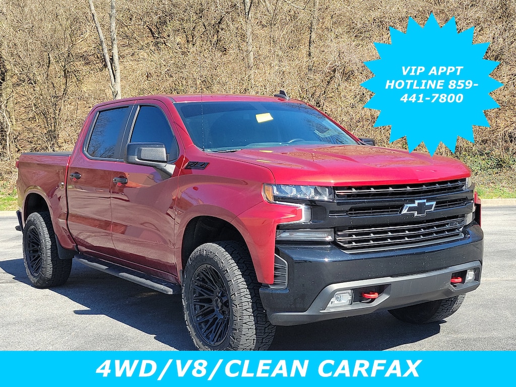 BED PROTECTION PACKAGE includes (B1J) wheel house liners and (CGN) Chevytec spray-on bedliner , SEATS, FRONT BUCKET with center console (STD), REAR AXLE, 3.23 RATIO, LT TRAIL BOSS PREFERRED EQUIPMENT GROUP includes standard equipment, LPO, BLACK TAILGATE LETTERING (dealer-installed), LPO, BLACK NAMEPLATES (dealer-installed), JET BLACK, CLOTH SEAT TRIM, ENGINE, 5.3L ECOTEC3 V8 (355 hp [265 kW] @ 5600 rpm, 383 lb-ft of torque [518 Nm] @ 4100 rpm); featuring available Dynamic Fuel Management that enables the engine to operate in 17 different patterns between 2 and 8 cylinders, depending on demand, to optimize power delivery and efficiency (STD), CHEVYTEC SPRAY-ON BEDLINER, BLACK WITH CHEVROLET LOGO (does not include spray-on liner on tailgate due to Black composite inner panel), CHERRY RED TINTCOAT.