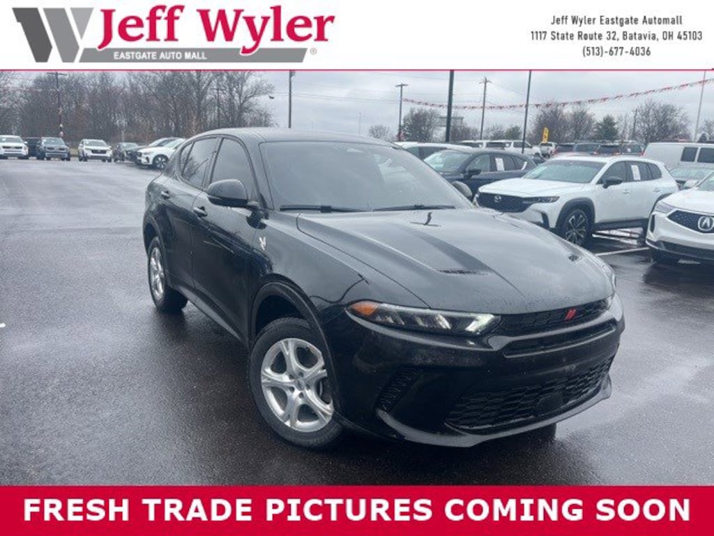 Jeff Wyler Eastgate Auto Mall is very proud to offer this stunning-looking 2024 Dodge Hornet GT in 8 Ball. Well equipped with: Cold Weather Group (Heated Front Seats, Heated Steering Wheel, and Remote Start System), Quick Order Package 23N GT, 10.25" Touchscreen Display, 4-Wheel Disc Brakes, 6 Speakers, ABS brakes, Air Conditioning, Alloy wheels, AM/FM radio: SiriusXM, Anti-whiplash front head restraints, Apple CarPlay, Apple CarPlay/Android Auto, Auto High-beam Headlights, Brake assist, Bumpers: body-color, Cloth/Leatherette Seats, Compass, Connectivity - US/Canada, Delay-off headlights, Disassociated Touchscreen Display, Driver door bin, Driver vanity mirror, Dual front impact airbags, Dual front side impact airbags, Electronic Stability Control, Emergency communication system: Dodge Connect, Four wheel independent suspension, Front anti-roll bar, Front Bucket Seats, Front Center Armrest w/Storage, Front dual zone A/C, Front reading lights, Fully automatic headlights, Google Android Auto, GPS Antenna Input, Heated door mirrors, Illuminated entry, Integrated Center Stack Radio, Knee airbag, Lane Departure Warning System, Leather steering wheel, Low tire pressure warning, Manual Adjust 6-Way Driver Seat, Manual Adjust 6-Way Front Passenger Seat, Normal Duty Suspension, Occupant sensing airbag, Outside temperature display, Overhead airbag, Overhead console, Panic alarm, ParkView Rear Back-Up Camera, Passenger door bin, Passenger vanity mirror, Power door mirrors, Power steering, Power windows, Radio: Uconnect 5 w/10.25" Display, Rain sensing wipers, Rear anti-roll bar, Rear seat center armrest, Rear window defroster, Rear window wiper, Remote keyless entry, Security system, Speed control, Speed-sensing steering, Split folding rear seat, Spoiler, Tachometer, TBD Axle Ratio, Telescoping steering wheel, Tilt steering wheel, Traction control, Trip computer, Turn signal indicator mirrors, Variably intermittent wipers, and Wheels: 17" x 7" Silver Aluminum. Ask about available certifications. Used vehicles 10 years of age or newer with less than 100,000 miles are eligible for the Wyler Assurance Program, but eligible vehicles must pass our reconditioning process and multi-point inspection. Provided the vehicle passes inspection, vehicles will be eligible for the 6 month/6,000 mile limited warranty. The 6 month/6,000 mile limited warranty is NOT available on AS-IS vehicles, wholesale vehicles, lease buyback/pass-thru vehicles or un-inspected vehicles. Note that this program can also apply to vehicles where the remaining factory coverage is less than 6 months or 6,000 miles. Please check the Federal Trade Commission (FTC) Buyers guide on the vehicle for full details as to whether or not warranty coverage may apply. Contact Dealer for additional details. The Wyler Assurance 6 month/6,000 Mile limited warranty ends 6 months from the date of the Retail Purchase Agreement (BUYERS ORDER) or when the vehicle's odometer registers 6,000 additional miles to the mileage listed on the BUYERS ORDER, whichever comes first. Your Deductible - The warranty holder on your contract pays the first $100 of each covered repair.