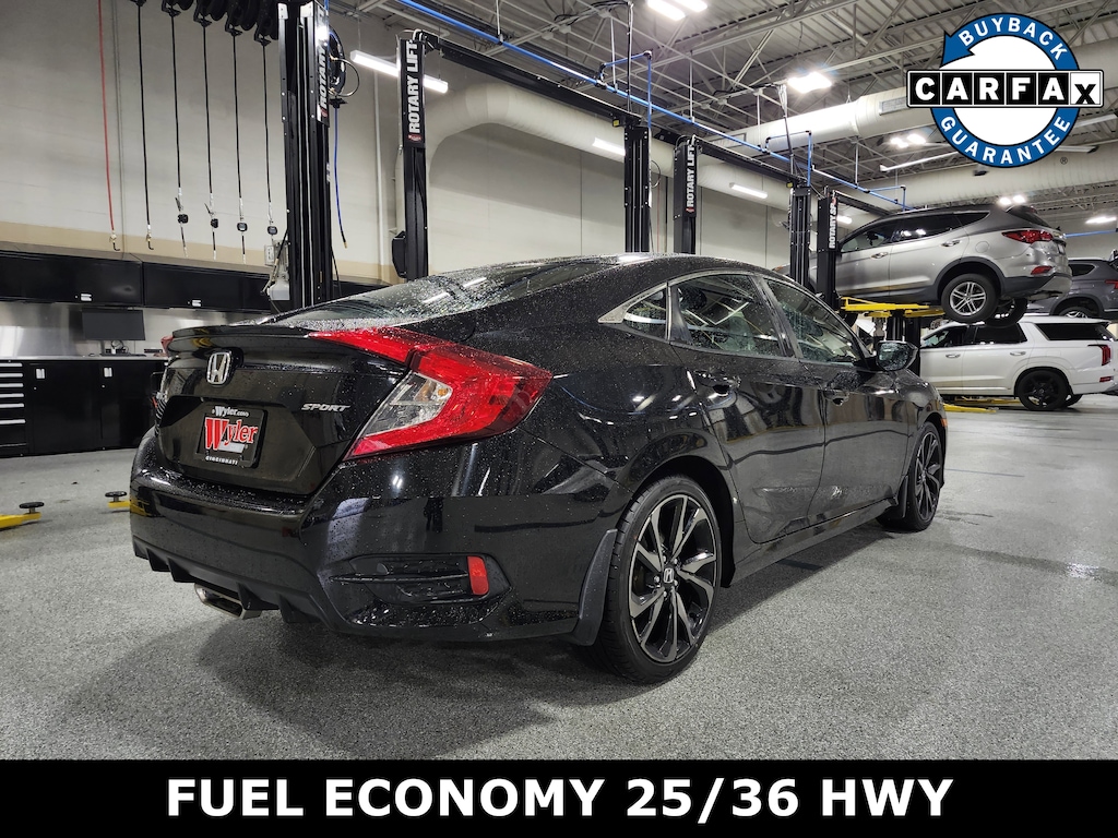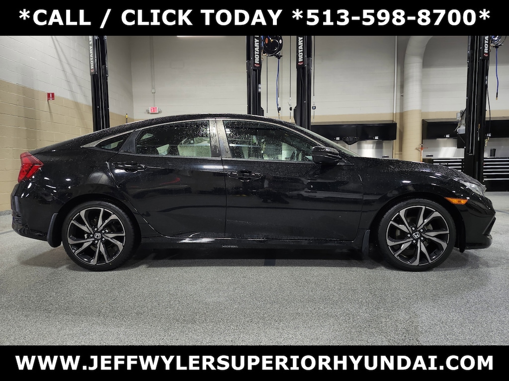 Jeff Wyler Superior Hyundai is pumped up to offer this beautiful 2019 Honda Civic Sport in Crystal Black Pearl. Well equipped with: Black Cloth, 4-Wheel Disc Brakes, 8 Speakers, ABS brakes, Air Conditioning, Alloy wheels, AM/FM radio, Apple CarPlay/Android Auto, Auto High-beam Headlights, Automatic temperature control, Brake assist, Bumpers: body-color, Cloth Seat Trim, Delay-off headlights, Driver door bin, Driver vanity mirror, Dual front impact airbags, Dual front side impact airbags, Electronic Stability Control, Emergency communication system: HondaLink, Exterior Parking Camera Rear, Forward collision: Collision Mitigation Braking System (CMBS) + FCW mitigation, Four wheel independent suspension, Front anti-roll bar, Front Bucket Seats, Front Center Armrest, Front fog lights, Front reading lights, Fully automatic headlights, Illuminated entry, Lane departure: Lane Keeping Assist System (LKAS) active, Leather Shift Knob, Low tire pressure warning, Occupant sensing airbag, Outside temperature display, Overhead airbag, Panic alarm, Passenger door bin, Passenger vanity mirror, Power door mirrors, Power steering, Power windows, Radio data system, Radio: 180-Watt AM/FM Audio System, Rear anti-roll bar, Rear window defroster, Remote keyless entry, Security system, Speed control, Speed-sensing steering, Split folding rear seat, Spoiler, Steering wheel mounted audio controls, Tachometer, Telescoping steering wheel, Tilt steering wheel, Traction control, Trip computer, and Wheels: 18" Alloy w/Gloss Black Inserts. This sales price excludes tax, title, and dealer fees. While every reasonable effort is made to ensure the accuracy of this information, we are not responsible for any errors or omissions contained on these pages. Used vehicles 10 years of age or newer with less than 100,000 miles are eligible for the Wyler Assurance Program, but eligible vehicles must pass our reconditioning process and multi-point inspection. Provided the vehicle passes inspection, vehicles will be eligible for the 6 month/6,000 mile limited warranty. The 6 month/6,000 mile limited warranty is NOT available on AS-IS vehicles, wholesale vehicles, lease buyback/pass-thru vehicles or un-inspected vehicles. Note that this program can also apply to vehicles where the remaining factory coverage is less than 6 months or 6,000 miles. Please check the Federal Trade Commission (FTC) Buyers guide on the vehicle for full details as to whether or not warranty coverage may apply. Contact Dealer for additional details. The Wyler Assurance 6 month/6,000 Mile limited warranty ends 6 months from the date of the Retail Purchase Agreement (BUYERS ORDER) or when the vehicle's odometer registers 6,000 additional miles to the mileage listed on the BUYERS ORDER, whichever comes first.Your Deductible - The warranty holder on your contract pays the first $100 of each covered repair.