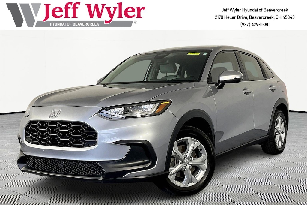 Clean CARFAX. Jeff Wyler Hyundai of Beavercreek is honored to offer this great-looking 2023 Honda HR-V LX in Lunar Silver Metallic. Well equipped with: 4 Speakers, 4-Wheel Disc Brakes, 5.436 Axle Ratio, ABS brakes, Adaptive Cruise Control: Adaptive Cruise Control (ACC) with Low-Speed Follow, Air Conditioning, Alloy wheels, AM/FM radio, Apple CarPlay/Android Auto, Auto High-beam Headlights, Automatic temperature control, Brake assist, Bumpers: body-color, Cloth Seat Trim, Delay-off headlights, Driver door bin, Driver vanity mirror, Dual front impact airbags, Dual front side impact airbags, Electronic Stability Control, Emergency communication system: HondaLink, Exterior Parking Camera Rear, Four wheel independent suspension, Front anti-roll bar, Front Bucket Seats, Front Center Armrest, Front reading lights, Fully automatic headlights, Illuminated entry, Knee airbag, Low tire pressure warning, Occupant sensing airbag, Outside temperature display, Overhead airbag, Panic alarm, Passenger door bin, Passenger vanity mirror, Power door mirrors, Power steering, Power windows, Radio data system, Radio: 180-Watt Audio System w/4 Speakers, Rear anti-roll bar, Rear reading lights, Rear side impact airbag, Rear window defroster, Rear window wiper, Remote keyless entry, Security system, Speed control, Speed-sensing steering, Split folding rear seat, Spoiler, Steering wheel mounted audio controls, Tachometer, Telescoping steering wheel, Tilt steering wheel, Traction control, Trip computer, Variably intermittent wipers, and Wheels: 17" Silver Painted Alloy.Come see the excitement at Jeff Wyler Hyundai of Beavercreek! Visit us online at www.jeffwylerhyundaiofbeavercreek.com Proudly Serving: Cincinnati, Dayton, Centeville, Ketttering, Moraine,Beavercreek, Xenia,Oakwood, Trotwood, Vandalia, Kettering, Wright Patterson, Riverside, Engelwood, Miamisburg, Huber Heights, Springboro, Brookville, Fairborn, West Carrollton, Yellow Springs, Bellbrook, Springfield Columbus, Hamilton, West Chester, Monroe, Fairfield. PROUDLY SERVING: CINCINNATI, DAYTON,COLUMBUS, LOUISVILLE, LEXINGTON, INDIANAPOLIS,HAMILTON, FLORENCE, ALEXANDRIA, BEAVERCREEK, SPRINGDALE, WEST CHESTER, MONROE, FAIRFIELD, KENWOOD, NEWPORT AND ALL OF GREATER CINCINNATI OHIO, INDIANA, AND NORTHERN KENTUCKY.