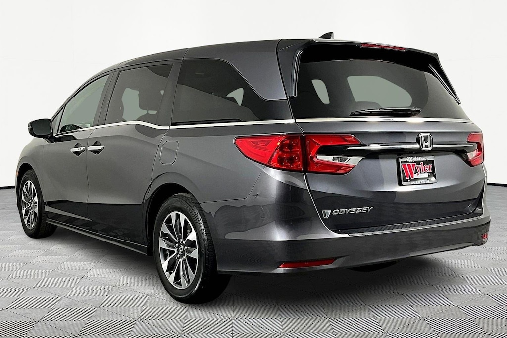 Jeff Wyler Honda of Colerain is excited to offer this outstanding-looking 2023 Honda Odyssey EX-L in Modern Steel Metallic. Well equipped with: 18" Machine-Finished Alloy Wheels, 3.61 Axle Ratio, 3rd row seats: split-bench, 4-Wheel Disc Brakes, 7 Speakers, A/V remote: CabinControl, ABS brakes, Adaptive Cruise Control: Adaptive Cruise Control (ACC) with Low-Speed Follow, Air Conditioning, Alloy wheels, AM/FM radio: SiriusXM, Anti-whiplash front head restraints, Apple CarPlay/Android Auto, Auto High-beam Headlights, Auto-dimming Rear-View mirror, Automatic temperature control, Blind Spot Information (BSI) System warning, Brake assist, Bumpers: body-color, Delay-off headlights, Driver door bin, Driver vanity mirror, Driver's Seat Mounted Armrest, Dual front impact airbags, Dual front side impact airbags, Electronic Stability Control, Exterior Parking Camera Rear, Four wheel independent suspension, Front anti-roll bar, Front Bucket Seats, Front dual zone A/C, Front fog lights, Front reading lights, Fully automatic headlights, Garage door transmitter: HomeLink, Heated door mirrors, Heated Front Bucket Seats, Heated front seats, Illuminated entry, Knee airbag, Lane departure: Lane Keeping Assist System (LKAS) active, Leather Seat Trim, Leather steering wheel, Low tire pressure warning, Memory seat, Occupant sensing airbag, Outside temperature display, Overhead airbag, Overhead console, Panic alarm, Passenger door bin, Passenger seat mounted armrest, Passenger vanity mirror, Power door mirrors, Power driver seat, Power Liftgate, Power moonroof, Power passenger seat, Power steering, Power windows, Radio data system, Radio: 160-Watt AM/FM/HD/SiriusXM Audio System, Rear air conditioning, Rear anti-roll bar, Rear reading lights, Rear seat center armrest, Rear window defroster, Rear window wiper, Reclining 3rd row seat, Remote keyless entry, Security system, Speed control, Speed-sensing steering, Speed-Sensitive Wipers, Split folding rear seat, Spoiler, Steering wheel mounted audio controls, Tachometer, Telescoping steering wheel, Tilt steering wheel, Traction control, Trip computer, Turn signal indicator mirrors, and Variably intermittent wipers.