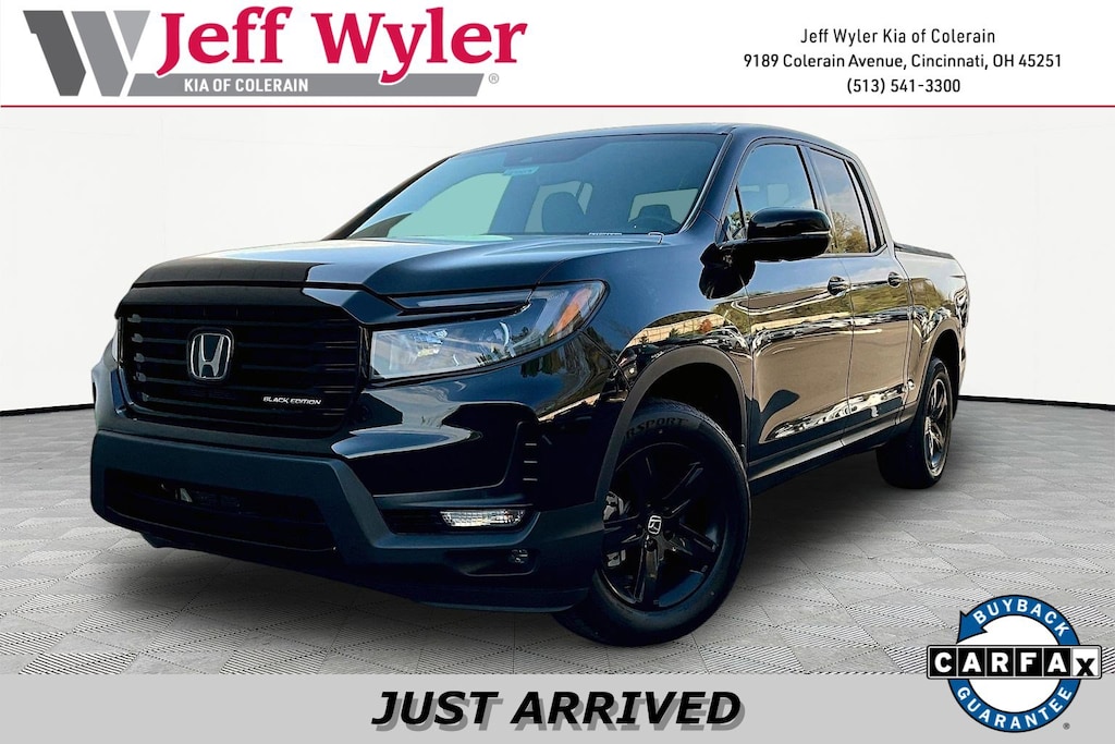 Jeff Wyler Kia of Colerain is pumped up to offer this terrific-looking 2023 Honda Ridgeline Black Edition in Crystal Black Pearl. 4-Wheel Disc Brakes, 4.33 Axle Ratio, 8 Speakers, ABS brakes, Air Conditioning, Alloy wheels, AM/FM radio: SiriusXM, Apple CarPlay/Android Auto, Auto High-beam Headlights, Auto-dimming Rear-View mirror, Automatic temperature control, Blind Spot Information (BSI) System warning, Bluetooth® Hands-Free Link, Brake assist, Bumpers: body-color, Compass, Delay-off headlights, Driver door bin, Driver vanity mirror, Driver's Seat Mounted Armrest, Dual front impact airbags, Dual front side impact airbags, Electronic Stability Control, Exterior Parking Camera Rear, Four wheel independent suspension, Front anti-roll bar, Front Bucket Seats, Front dual zone A/C, Front fog lights, Front reading lights, Fully automatic headlights, Garage door transmitter: HomeLink, Heated door mirrors, Heated Front Bucket Seats, Heated front seats, Heated steering wheel, Honda Satellite-Linked Navigation System, Illuminated entry, Leather Seat Trim, Low tire pressure warning, Memory seat, Navigation system: Honda Satellite-Linked Navigation System, Occupant sensing airbag, Outside temperature display, Overhead airbag, Overhead console, Panic alarm, Passenger door bin, Passenger seat mounted armrest, Passenger vanity mirror, Power door mirrors, Power driver seat, Power moonroof, Power passenger seat, Power steering, Power windows, Radio data system, Radio: 540-Watt Premium Audio System w/8 Speakers, Rear air conditioning, Rear anti-roll bar, Rear reading lights, Rear seat center armrest, Rear step bumper, Rear window defroster, Remote keyless entry, Security system, SiriusXM, Speed control, Speed-sensing steering, Split folding rear seat, Steering wheel mounted audio controls, Tachometer, Telescoping steering wheel, Tilt steering wheel, Traction control, Trip computer, Turn signal indicator mirrors, Variably intermittent wipers, and Wheels: 18" Exclusive Gloss Black Alloy Our PRE-OWNED vehicles are put through a rigorous 167- POINT QUALITY ASSURANCE INSPECTION along with an average amount of over $1,400.00 SPENT to recondition each vehicle so we can be sure to deliver you the highest quality vehicle like you deserve! ***ONLINE PRICE DOES NOT INCLUDE WYLER FAMILY FIRST PACKAGE***