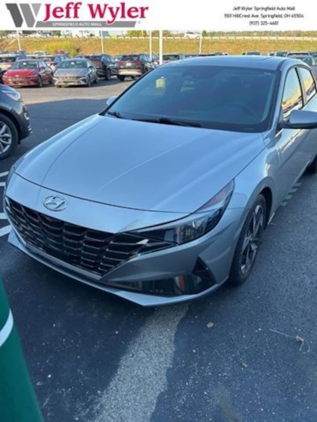Jeff Wyler Springfield Auto Mall is excited to offer this beautiful 2021 Hyundai Elantra Limited in Shimmering Silver Pearl. Well equipped with: Option Group 01, 17 x 7.0J Alloy Wheels, 4-Wheel Disc Brakes, 8 Speakers, ABS brakes, Air Conditioning, Alloy wheels, AM/FM radio: SiriusXM, Apple CarPlay & Android Auto, Auto High-beam Headlights, Auto-dimming Rear-View mirror, Automatic temperature control, Brake assist, Bumpers: body-color, Cargo Net, Carpeted Floor Mats, Delay-off headlights, Driver door bin, Driver vanity mirror, Dual front impact airbags, Dual front side impact airbags, Electronic Stability Control, Emergency communication system: Blue Link Connected Car Service (3-year complimentary subscription), Exterior Parking Camera Rear, Front anti-roll bar, Front Bucket Seats, Front Center Armrest, Front dual zone A/C, Front reading lights, Front wheel independent suspension, Fully automatic headlights, Garage door transmitter: HomeLink, Heated door mirrors, Heated Front Bucket Seats, Heated front seats, Illuminated entry, Leather-Trimmed Seats, Low tire pressure warning, Navigation System, Occupant sensing airbag, Outside temperature display, Overhead airbag, Overhead console, Panic alarm, Passenger door bin, Passenger vanity mirror, Power door mirrors, Power driver seat, Power moonroof, Power steering, Power windows, Radio: AM/FM/HD/SiriusXM Display Audio, Rear Bumper Applique, Rear seat center armrest, Rear window defroster, Remote keyless entry, Security system, Speed control, Speed-sensing steering, Split folding rear seat, Steering wheel mounted audio controls, Tachometer, Telescoping steering wheel, Tilt steering wheel, Traction control, Trip computer, Turn signal indicator mirrors, and Variably intermittent wipers. Awards:* NACTOY 2021 North American Car of the Year Ask about available certifications. Used vehicles 10 years of age or newer with less than 100,000 miles are eligible for the Wyler Assurance Program, but eligible vehicles must pass our reconditioning process and multi-point inspection. Provided the vehicle passes inspection, vehicles will be eligible for the 6 month/6,000 mile limited warranty. The 6 month/6,000 mile limited warranty is NOT available on AS-IS vehicles, wholesale vehicles, lease buyback/pass-thru vehicles or un-inspected vehicles. Note that this program can also apply to vehicles where the remaining factory coverage is less than 6 months or 6,000 miles. Please check the Federal Trade Commission (FTC) Buyers guide on the vehicle for full details as to whether or not warranty coverage may apply. Contact Dealer for additional details. The Wyler Assurance 6 month/6,000 Mile limited warranty ends 6 months from the date of the Retail Purchase Agreement (BUYERS ORDER) or when the vehicle's odometer registers 6,000 additional miles to the mileage listed on the BUYERS ORDER, whichever comes first. Your Deductible - The warranty holder on your contract pays the first $100 of each covered repair.
