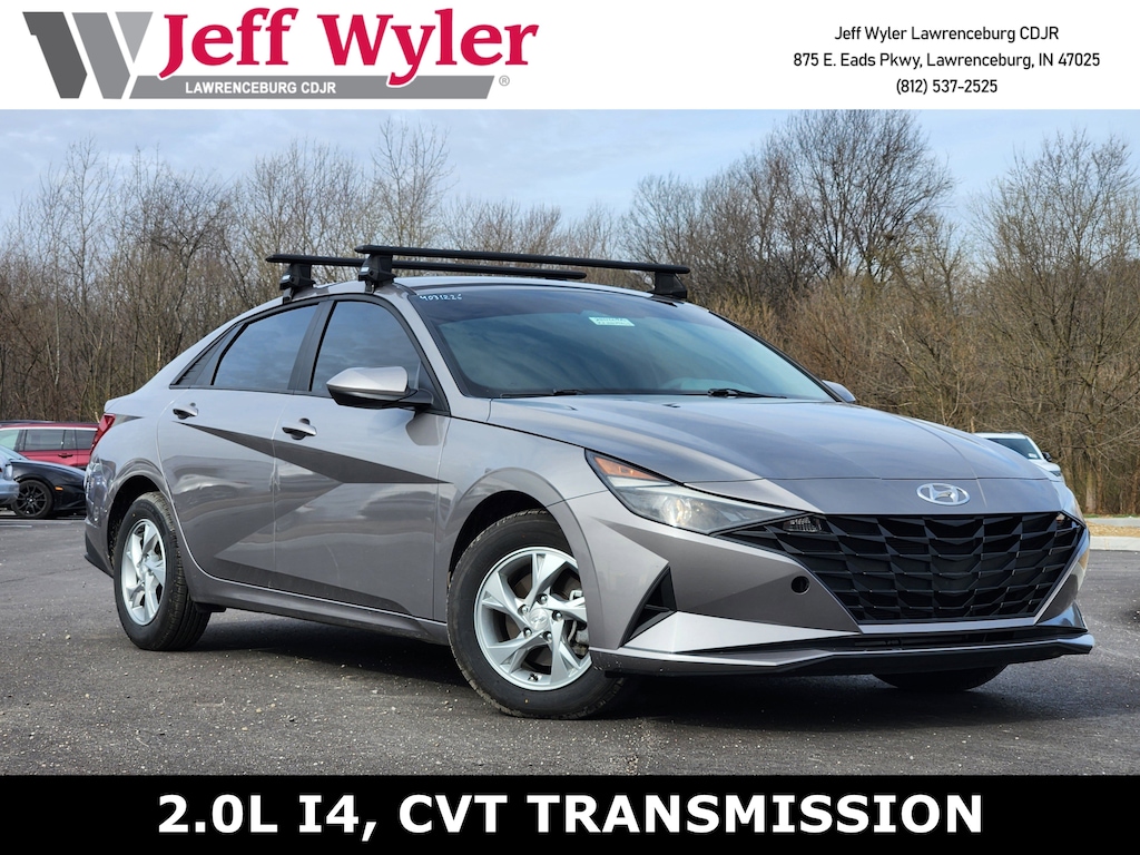 Jeff Wyler Chrysler Dodge Jeep of Lawrenceburg is excited to offer this fantastic 2022 Hyundai Elantra SE in Fluid Metal. Option Group 01, 15" x 6.0J Alloy Wheels, 4 Speakers, 4-Wheel Disc Brakes, ABS brakes, Air Conditioning, Alloy wheels, AM/FM radio, Apple CarPlay & Android Auto, Auto High-beam Headlights, Brake assist, Bumpers: body-color, Carpeted Floor Mats, Cloth Seat Trim, Delay-off headlights, Driver door bin, Driver vanity mirror, Dual front impact airbags, Dual front side impact airbags, Electronic Stability Control, Exterior Parking Camera Rear, Front anti-roll bar, Front Bucket Seats, Front Center Armrest, Front reading lights, Front wheel independent suspension, Fully automatic headlights, Illuminated entry, Lane Departure Warning System, Low tire pressure warning, Occupant sensing airbag, Outside temperature display, Overhead airbag, Overhead console, Panic alarm, Passenger door bin, Passenger vanity mirror, Power door mirrors, Power steering, Power windows, Radio: AM/FM/HD Display Audio, Rear Bumper Applique, Rear window defroster, Remote keyless entry, Reversible Cargo Tray, Security system, Speed control, Speed-sensing steering, Steering wheel mounted audio controls, Tachometer, Telescoping steering wheel, Tilt steering wheel, Traction control, Trip computer, and Variably intermittent wipers Our PRE-OWNED vehicles are put through a rigorous 167- POINT QUALITY ASSURANCE INSPECTION along with an average amount of over $1,400.00 SPENT to recondition each vehicle so we can be sure to deliver you the highest quality vehicle like you deserve! ***ONLINE PRICE DOES NOT INCLUDE WYLER FAMILY FIRST PACKAGE*** Stop by 4136 Shelbyville Road to see for yourself, or give us a call @ 502-897-3151 to schedule your test drive! Ask about available certifications.