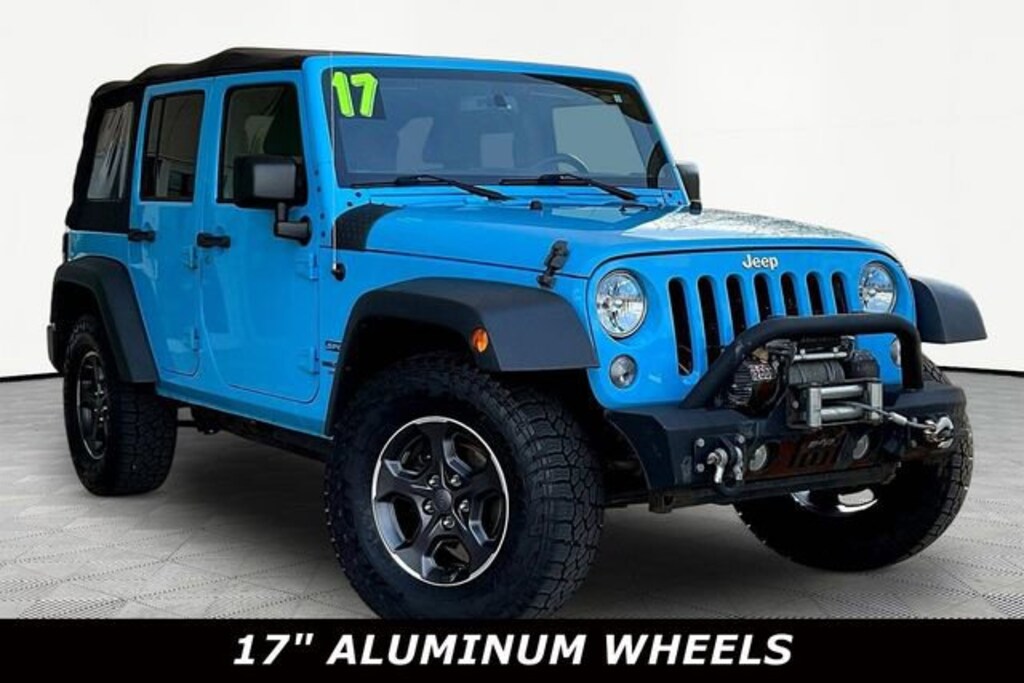 Jeff Wyler Springfield Auto Mall is pleased to offer this charming 2017 Jeep Wrangler Unlimited Sport in Chief Clearcoat. Well equipped with: Quick Order Package 24S (17 x 7.5 Aluminum Wheels, Auto-Dimming Mirror w/Reading Lamp, Chrome/Leather Wrapped Shift Knob, Deep Tint Sunscreen Windows, Front 1-Touch Down Power Windows, Leather Wrapped Steering Wheel, Power Convenience Group, Power Heated Mirrors, Power Locks, Remote Keyless Entry, and Security Alarm), 1-Yr SiriusXM Radio Service, 16 x 7.0 Luxury Styled Steel Wheels, 3.21 Rear Axle Ratio, 4-Wheel Disc Brakes, 8 Speakers, ABS brakes, Air Conditioning, AM/FM radio, Brake assist, CD player, Cloth Seats w/Adjustable Head Restraints, Compass, Driver door bin, Driver vanity mirror, Dual front impact airbags, Electronic Stability Control, Front anti-roll bar, Front Bucket Seats, Front Center Armrest w/Storage, Front fog lights, Integrated roll-over protection, Low tire pressure warning, Normal Duty Suspension, Occupant sensing airbag, Outside temperature display, Passenger door bin, Passenger vanity mirror, Power steering, Radio: 130, Rear anti-roll bar, SIRIUS Satellite Radio, Speed control, Split folding rear seat, Steering wheel mounted audio controls, Tachometer, Tilt steering wheel, Traction control, Trip computer, and Variably intermittent wipers. Awards:* 2017 KBB.com 10 Most Awarded Brands Ask about available certifications. Used vehicles 10 years of age or newer with less than 100,000 miles are eligible for the Wyler Assurance Program, but eligible vehicles must pass our reconditioning process and multi-point inspection. Provided the vehicle passes inspection, vehicles will be eligible for the 6 month/6,000 mile limited warranty. The 6 month/6,000 mile limited warranty is NOT available on AS-IS vehicles, wholesale vehicles, lease buyback/pass-thru vehicles or un-inspected vehicles. Note that this program can also apply to vehicles where the remaining factory coverage is less than 6 months or 6,000 miles. Please check the Federal Trade Commission (FTC) Buyers guide on the vehicle for full details as to whether or not warranty coverage may apply. Contact Dealer for additional details. The Wyler Assurance 6 month/6,000 Mile limited warranty ends 6 months from the date of the Retail Purchase Agreement (BUYERS ORDER) or when the vehicle's odometer registers 6,000 additional miles to the mileage listed on the BUYERS ORDER, whichever comes first. Your Deductible - The warranty holder on your contract pays the first $100 of each covered repair.