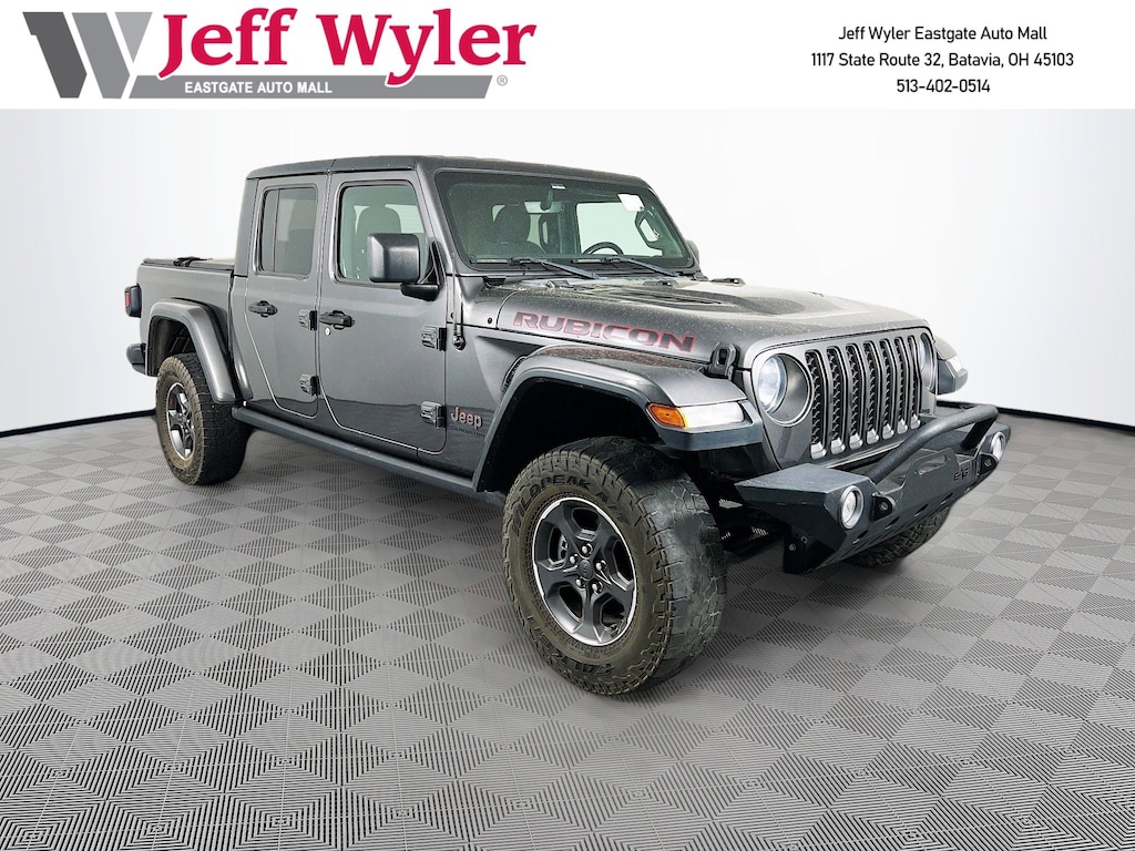 Jeff Wyler Eastgate Auto Mall is pleased to offer this wonderful 2020 Jeep Gladiator Rubicon in Granite Crystal Metallic Clearcoat. Well equipped with: 8.4" Radio & Premium Audio Group (1-Year SiriusXM Guardian Trial, 5-Year SiriusXM Traffic Service, 5-Year SiriusXM Travel Link Service, Alpine Premium Audio System, Auto-Dimming Rear-View Mirror, Emergency/Assistance Call, For Details, Visit DriveUconnect.com, HD Radio, Radio: Uconnect 4C Nav w/8.4" Display, SiriusXM Traffic Plus, and SiriusXM Travel Link), Quick Order Package 24R, Trailer Tow Package (240 Amp Alternator, Class IV Hitch Receiver, Heavy-Duty Engine Cooling, and Trailer Hitch Zoom), 4-Wheel Disc Brakes, 4.10 Rear Axle Ratio, 8 Speakers, 97 mph Maximum Speed Calibration, ABS brakes, Air Conditioning, All-Weather Slush Mats, Alloy wheels, AM/FM radio: SiriusXM, Apple CarPlay/Android Auto, Automatic temperature control, Black 3-Piece Hard Top, Body Color Fender Flares (2-Piece), Brake assist, Compass, Delay-off headlights, Driver door bin, Driver vanity mirror, Dual front impact airbags, Dual front side impact airbags, Electronic Stability Control, Freedom Panel Storage Bag, Front anti-roll bar, Front Bucket Seats, Front Center Armrest w/Storage, Front dual zone A/C, Front fog lights, Front reading lights, Fully automatic headlights, Garage door transmitter, Heated door mirrors, Illuminated entry, Integrated roll-over protection, Leather steering wheel, Low tire pressure warning, No Soft Top, Occupant sensing airbag, Outside temperature display, Panic alarm, ParkView Rear Back-Up Camera, Passenger door bin, Passenger vanity mirror, Performance Suspension, Power door mirrors, Power steering, Power windows, Premium Cloth Low-Back Bucket Seats, Radio data system, Radio: Uconnect 4 w/7" Display, Rear anti-roll bar, Rear reading lights, Rear Sliding Window, Rear Window Defroster, Remote keyless entry, Security system, Speed control, Split folding rear seat, Spray In Bedliner, Steering wheel mounted audio controls, Tachometer, Telescoping steering wheel, Tilt steering wheel, Traction control, Trip computer, Variably intermittent wipers, Voltmeter, and Wheels: 17" x 7.5" Granite Crystal AluminuM. Clean CARFAX. Awards: * 2020 KBB.com 10 Favorite New-for-2020 Cars * NACTOY 2020 North American Truck of the Year Ask about available certifications. Used vehicles 10 years of age or newer with less than 100,000 miles are eligible for the Wyler Assurance Program, but eligible vehicles must pass our reconditioning process and multi-point inspection. Provided the vehicle passes inspection, vehicles will be eligible for the 6 month/6,000 mile limited warranty. The 6 month/6,000 mile limited warranty is NOT available on AS-IS vehicles, wholesale vehicles, lease buyback/pass-thru vehicles or un-inspected vehicles. Note that this program can also apply to vehicles where the remaining factory coverage is less than 6 months or 6,000 miles. Please check the Federal Trade Commission (FTC) Buyers guide on the vehicle for full details as to whether or not warranty coverage may apply. Contact Dealer for additional details. The Wyler Assurance 6 month/6,000 Mile limited warranty ends 6 months from the date of the Retail Purchase Agreement (BUYERS ORDER) or when the vehicle's odometer registers 6,000 additional miles to the mileage listed on the BUYERS ORDER, whichever comes first. Your Deductible - The warranty holder on your contract pays the first $100 of each covered repair.