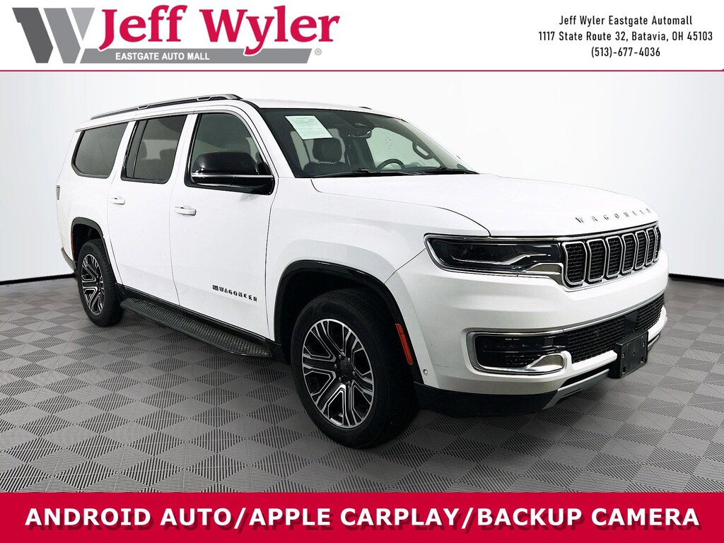 Jeff Wyler Eastgate Auto Mall is pleased to offer this great 2024 Jeep Wagoneer L Series II in Bright White Clearcoat. Well equipped with: Flexible Seating Group (40/20/40 2nd Row Bench Power Tip/Slide, 8-Passenger Seating, and Full Length Floor Console), Quick Order Package 25J, 10 Speakers, 3.55 Rear Axle Ratio, 3rd row seats: bench, 4-Wheel Disc Brakes, ABS brakes, Adjustable pedals, Air Conditioning, Alloy wheels, AM/FM radio: SiriusXM with 360L, Anti-whiplash front head restraints, Apple CarPlay/Android Auto, Audio memory, Auto-dimming door mirrors, Auto-dimming Rear-View mirror, Auto-leveling suspension, Automatic temperature control, Brake assist, Bumpers: body-color, Compass, Delay-off headlights, Driver door bin, Driver vanity mirror, Driver's Seat Mounted Armrest, Dual front impact airbags, Dual front side impact airbags, Electronic Stability Control, Emergency communication system: Wagoneer Connect, Exterior Parking Camera Rear, Four wheel independent suspension, Front anti-roll bar, Front Bucket Seats, Front Center Armrest w/Storage, Front dual zone A/C, Front fog lights, Front reading lights, Fully automatic headlights, Garage door transmitter, Genuine wood console insert, Genuine wood dashboard insert, Genuine wood door panel insert, Heated door mirrors, Heated front seats, Heated steering wheel, Illuminated entry, Knee airbag, Leather Trimmed Bucket Seats, Low tire pressure warning, Memory seat, Navigation System, Normal Duty Suspension, Occupant sensing airbag, Outside temperature display, Overhead airbag, Overhead console, Panic alarm, Passenger door bin, Passenger seat mounted armrest, Passenger vanity mirror, Pedal memory, Power adjustable front head restraints, Power door mirrors, Power driver seat, Power Liftgate, Power passenger seat, Power steering, Power windows, Radio data system, Radio: Uconnect 5 Nav w/10.1" Display, Rain sensing wipers, Rear air conditioning, Rear anti-roll bar, Rear reading lights, Rear seat center armrest, Rear window defroster, Rear window wiper, Reclining 3rd row seat, Remote keyless entry, Security system, Speed control, Speed-sensing steering, Speed-Sensitive Wipers, Split folding rear seat, Steering wheel memory, Steering wheel mounted audio controls, Tachometer, Telescoping steering wheel, Tilt steering wheel, Traction control, Trip computer, Turn signal indicator mirrors, Variably intermittent wipers, Ventilated front seats, Voltmeter, and Wheels: 20" x 9.0" Premium 2 Aluminum. CARFAX One-Owner. Ask about available certifications. Used vehicles 10 years of age or newer with less than 100,000 miles are eligible for the Wyler Assurance Program, but eligible vehicles must pass our reconditioning process and multi-point inspection. Provided the vehicle passes inspection, vehicles will be eligible for the 6 month/6,000 mile limited warranty. The 6 month/6,000 mile limited warranty is NOT available on AS-IS vehicles, wholesale vehicles, lease buyback/pass-thru vehicles or un-inspected vehicles. Note that this program can also apply to vehicles where the remaining factory coverage is less than 6 months or 6,000 miles. Please check the Federal Trade Commission (FTC) Buyers guide on the vehicle for full details as to whether or not warranty coverage may apply. Contact Dealer for additional details. The Wyler Assurance 6 month/6,000 Mile limited warranty ends 6 months from the date of the Retail Purchase Agreement (BUYERS ORDER) or when the vehicle's odometer registers 6,000 additional miles to the mileage listed on the BUYERS ORDER, whichever comes first. Your Deductible - The warranty holder on your contract pays the first $100 of each covered repair.