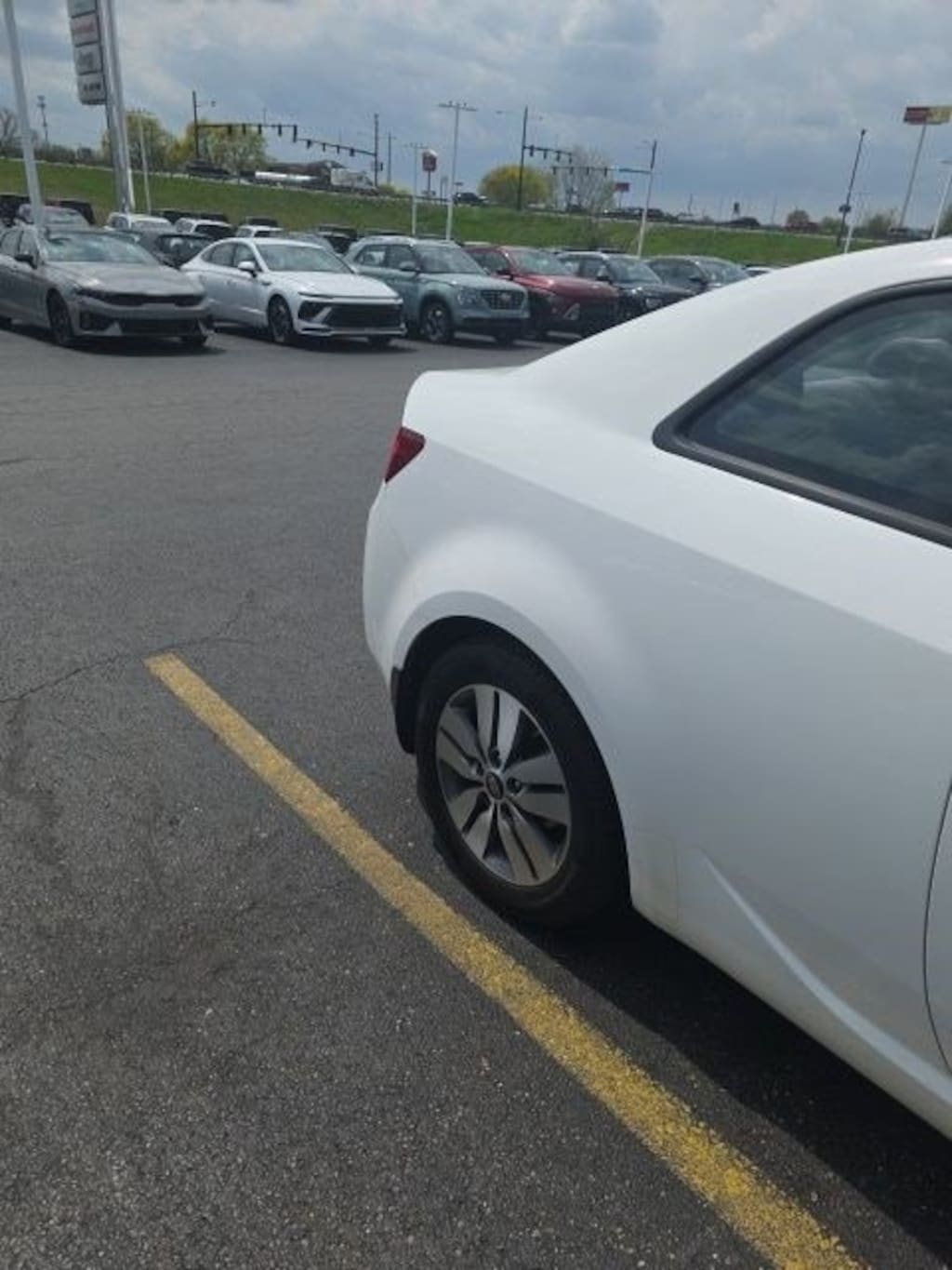 Jeff Wyler Springfield Auto Mall is pumped up to offer this great-looking 2013 Kia Forte Koup EX in Clear White. Well equipped with: 4-Wheel Disc Brakes, 6 Speakers, 6.0" x 16" 10-Spoke Alloy Wheels, ABS brakes, Air Conditioning, Alloy wheels, AM/FM radio: SIRIUS, Anti-whiplash front head restraints, Brake assist, Bumpers: body-color, CD player, Cloth Seat Trim, Driver door bin, Driver vanity mirror, Dual front impact airbags, Dual front side impact airbags, Electronic Stability Control, Front anti-roll bar, Front Bucket Seats, Front Center Armrest w/Storage, Front reading lights, Front Sport Seats, Front wheel independent suspension, Heated door mirrors, Illuminated entry, Low tire pressure warning, MP3 decoder, Occupant sensing airbag, Outside temperature display, Overhead airbag, Overhead console, Panic alarm, Passenger door bin, Passenger vanity mirror, Power door mirrors, Power steering, Power Sunroof w/Tilt, Power windows, Radio: AM/FM/CD/MP3/Satellite Audio System, Rear window defroster, Remote keyless entry, Remote Start, Speed control, Speed-sensing steering, Split folding rear seat, Steering wheel mounted audio controls, Tachometer, Telescoping steering wheel, Tilt steering wheel, Traction control, Trip computer, Turn signal indicator mirrors, Variably intermittent wipers, and Wheel Locks. Reviews: * If your budget says mac and cheese, but your self-worth demands prime rib, one of the three 2013 Kia Forte compacts is sure to satisfy both demands. Good resale and reliability ratings should ease worries for first-time Kia buyers, as should the robust standard warranty. Source: KBB.comAsk about available certifications. Used vehicles 10 years of age or newer with less than 100,000 miles are eligible for the Wyler Assurance Program, but eligible vehicles must pass our reconditioning process and multi-point inspection. Provided the vehicle passes inspection, vehicles will be eligible for the 6 month/6,000 mile limited warranty. The 6 month/6,000 mile limited warranty is NOT available on AS-IS vehicles, wholesale vehicles, lease buyback/pass-thru vehicles or un-inspected vehicles. Note that this program can also apply to vehicles where the remaining factory coverage is less than 6 months or 6,000 miles. Please check the Federal Trade Commission (FTC) Buyers guide on the vehicle for full details as to whether or not warranty coverage may apply. Contact Dealer for additional details. The Wyler Assurance 6 month/6,000 Mile limited warranty ends 6 months from the date of the Retail Purchase Agreement (BUYERS ORDER) or when the vehicle's odometer registers 6,000 additional miles to the mileage listed on the BUYERS ORDER, whichever comes first. Your Deductible - The warranty holder on your contract pays the first $100 of each covered repair.