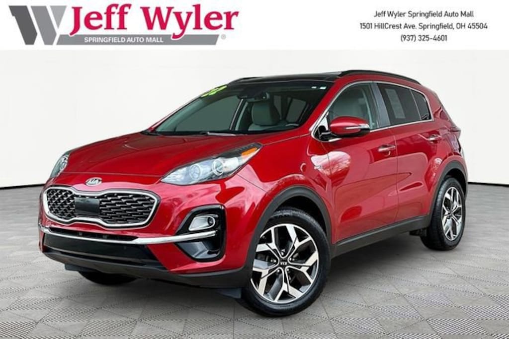 Jeff Wyler Springfield Auto Mall is very proud to offer this fantastic-looking 2022 Kia Sportage EX in Hyper Red. Well equipped with: EX Technology Package (8-Way Power Adjustable Passenger Seat, Auto-Dimming Rear-View Mirror w/Homelink & Compass, Electronic Parking Brake (EPB), Forward Collision Assist, Front & Rear Park Assist Sensors, Heated Steering Wheel, Leather Seat Trim, Radio: AM/FM/SiriusXM Audio System, Smart Cruise Control w/Stop & Go, Ventilated Front Seats, and Wireless Charging Pad), 18 Machine-Finished Alloy Wheels, 4-Wheel Disc Brakes, 6 Speakers, ABS brakes, Air Conditioning, Alloy wheels, AM/FM radio, Apple CarPlay & Android Auto, Auto High-beam Headlights, Automatic temperature control, Axle Ratio: 3.195, Brake assist, Bumpers: body-color, Carpeted Floor Mats, Delay-off headlights, Driver door bin, Driver vanity mirror, Dual front impact airbags, Dual front side impact airbags, Electronic Stability Control, Exterior Parking Camera Rear, Four wheel independent suspension, Front anti-roll bar, Front Bucket Seats, Front Center Armrest, Front dual zone A/C, Front fog lights, Front reading lights, Fully automatic headlights, Heated door mirrors, Heated Front Bucket Seats, Heated front seats, Illuminated entry, Leather Shift Knob, Leather steering wheel, Leatherette Seat Trim, Low tire pressure warning, Occupant sensing airbag, Outside temperature display, Overhead airbag, Overhead console, Panic alarm, Passenger door bin, Passenger vanity mirror, Power door mirrors, Power driver seat, Power Liftgate, Power moonroof, Power steering, Power windows, Radio: AM/FM Audio System, Rear anti-roll bar, Rear seat center armrest, Rear window defroster, Rear window wiper, Remote keyless entry, Roof rack: rails only, Security system, Speed control, Speed-sensing steering, Split folding rear seat, Spoiler, Steering wheel mounted audio controls, Tachometer, Telescoping steering wheel, Tilt steering wheel, Traction control, Trip computer, Turn signal indicator mirrors, and Variably intermittent wipers. Ask about available certifications. Used vehicles 10 years of age or newer with less than 100,000 miles are eligible for the Wyler Assurance Program, but eligible vehicles must pass our reconditioning process and multi-point inspection. Provided the vehicle passes inspection, vehicles will be eligible for the 6 month/6,000 mile limited warranty. The 6 month/6,000 mile limited warranty is NOT available on AS-IS vehicles, wholesale vehicles, lease buyback/pass-thru vehicles or un-inspected vehicles. Note that this program can also apply to vehicles where the remaining factory coverage is less than 6 months or 6,000 miles. Please check the Federal Trade Commission (FTC) Buyers guide on the vehicle for full details as to whether or not warranty coverage may apply. Contact Dealer for additional details. The Wyler Assurance 6 month/6,000 Mile limited warranty ends 6 months from the date of the Retail Purchase Agreement (BUYERS ORDER) or when the vehicle's odometer registers 6,000 additional miles to the mileage listed on the BUYERS ORDER, whichever comes first. Your Deductible - The warranty holder on your contract pays the first $100 of each covered repair.