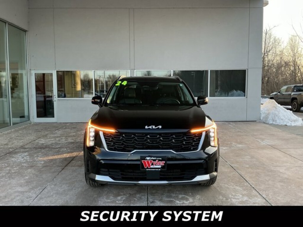 Jeff Wyler Springfield Auto Mall is excited to offer this wonderful 2024 Kia Sorento S in Ebony Black. Well equipped with: 3rd row seats: split-bench, 4-Wheel Disc Brakes, 4.081 Axle Ratio, 6 Speakers, ABS brakes, Air Conditioning, Alloy wheels, AM/FM radio: SiriusXM, Apple CarPlay & Android Auto, Auto High-beam Headlights, Automatic temperature control, Brake assist, Bumpers: body-color, Carpeted Floor Mats, Delay-off headlights, Driver door bin, Driver vanity mirror, Dual front impact airbags, Dual front side impact airbags, Electronic Stability Control, Emergency communication system: 911 Connect, Exterior Parking Camera Rear, Four wheel independent suspension, Front anti-roll bar, Front Bucket Seats, Front Center Armrest, Front dual zone A/C, Front fog lights, Front reading lights, Fully automatic headlights, Heated door mirrors, Heated Front Bucket Seats, Heated front seats, Illuminated entry, Knee airbag, Leather Shift Knob, Leather steering wheel, Low tire pressure warning, Navigation System, Occupant sensing airbag, Outside temperature display, Overhead airbag, Overhead console, Panic alarm, Passenger door bin, Passenger vanity mirror, Power door mirrors, Power driver seat, Power steering, Power windows, Radio data system, Radio: AM/FM Audio System, Rear anti-roll bar, Rear reading lights, Rear seat center armrest, Rear side impact airbag, Rear window defroster, Rear window wiper, Remote keyless entry, Security system, Smart Key w/ Push Button and Remote Start, Speed control, Speed-sensing steering, Split folding rear seat, Spoiler, Steering wheel mounted audio controls, SynTex Artificial Leather Seat Trim, Tachometer, Telescoping steering wheel, Tilt steering wheel, Traction control, Trip computer, Turn signal indicator mirrors, Variably intermittent wipers, and Wheels: 7.5J x 18 Alloy w/Machine Finish. Ask about available certifications. Used vehicles 10 years of age or newer with less than 100,000 miles are eligible for the Wyler Assurance Program, but eligible vehicles must pass our reconditioning process and multi-point inspection. Provided the vehicle passes inspection, vehicles will be eligible for the 6 month/6,000 mile limited warranty. The 6 month/6,000 mile limited warranty is NOT available on AS-IS vehicles, wholesale vehicles, lease buyback/pass-thru vehicles or un-inspected vehicles. Note that this program can also apply to vehicles where the remaining factory coverage is less than 6 months or 6,000 miles. Please check the Federal Trade Commission (FTC) Buyers guide on the vehicle for full details as to whether or not warranty coverage may apply. Contact Dealer for additional details. The Wyler Assurance 6 month/6,000 Mile limited warranty ends 6 months from the date of the Retail Purchase Agreement (BUYERS ORDER) or when the vehicle's odometer registers 6,000 additional miles to the mileage listed on the BUYERS ORDER, whichever comes first. Your Deductible - The warranty holder on your contract pays the first $100 of each covered repair.