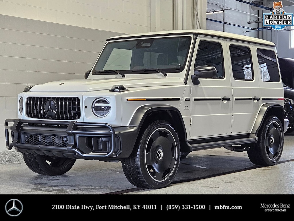 659 MANUFAKTUR Moonlight White Magno 913 MANUFAKTUR black with accent band in platinum white Leather Options DD5 MANUFAKTUR Interior Package Plus JC1 Instrument panel in nappa leather P77 SUPERIOR Line Interior PK2 Active Multicontour Seat Package Plus DF4 AMG Night Package Magno 5U8 Darkened lamp units 7U8 Typography in high-gloss black C44 Front protective bar in night black magno C56 Simulated underguard in night black magno CA0 AMG-specific radiator grille in dark chrome CK9 MANUFAKTUR bumpers and flared wheel arches in night black magno CS1 Mercedes star front and rear in high-gloss black CZ3 Bumper insert in night black magno FS1 Exterior mirror housings in matt black P56 AMG Night Package PAZ AMG Night Package II T81 MANUFAKTUR running boards in black 21U Dashcam 494 USA specification 7U1 AMG emblem in Dark Chrome on bonnet 854 MBUX High-End Rear Seat Entertainment System BS2 AMG front and rear brake callipers painted in red CK0 AMG-specific exhaust system in black E20 MANUFAKTUR logo projector in exterior mirror GK2 MANUFAKTUR Logo Package in black L6H AMG Performance steering wheel in carbon-fiber design /Microfiber PBR ENERGIZING Package Plus RJ8 22â AMG Forged Monoblock Wheels, Matte Black RR3 Spare wheel ring painted in night black magno T91 MANUFAKTUR door handle in black with embossed logo VG0 Rubber mat set X24 Model year 2025 Y72 MANUFAKTUR paint finish, magno ZA2 Full transport packaging ZG6 AMG Carbon Fiber Trim ZT7 Trim element in the grab handle with "MANUFAKTUR" lettering D09 Wheel Locking Bolts D38 AMG Star Set- Plate Frame/Valve Caps/ Keychain D48 AMG Crest Tow Hitch Plug D49 First-Aid Kit