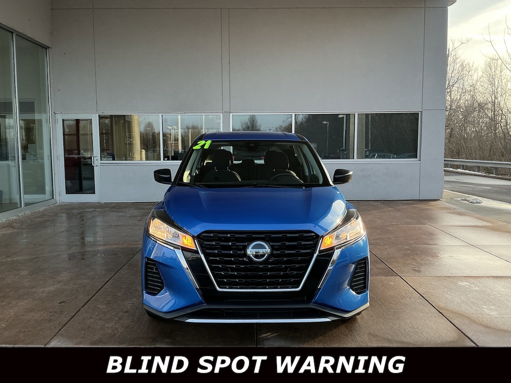 Jeff Wyler Springfield Auto Mall is excited to offer this attractive-looking 2021 Nissan Kicks S in Electric Blue Metallic. Well equipped with: 16" Steel Wheels w/Full Covers, 3.927 Axle Ratio, 6 Speakers, ABS brakes, Air Conditioning, AM/FM radio, Apple CarPlay/Android Auto, Auto High-beam Headlights, Blind Spot Warning, Brake assist, Bumpers: body-color, Carpeted Floor Mats w/Cargo Mat, Center Armrest w/Storage, Cloth Seat Trim, Driver door bin, Driver vanity mirror, Driver's Seat Mounted Armrest, Dual front impact airbags, Dual front side impact airbags, Electronic Stability Control, Front anti-roll bar, Front Bucket Seats, Front reading lights, Front wheel independent suspension, Fully automatic headlights, Illuminated entry, Knee airbag, Low tire pressure warning, Occupant sensing airbag, Outside temperature display, Overhead airbag, Panic alarm, Passenger door bin, Passenger vanity mirror, Power door mirrors, Power steering, Power windows, Radio data system, Radio: AM/FM Audio System, Rear Parking Sensors, Rear reading lights, Rear side impact airbag, Rear window defroster, Rear window wiper, Remote keyless entry, Speed control, Splash Guards Grain (4 Piece), Split folding rear seat, Sport steering wheel, Steering wheel mounted audio controls, Tachometer, Telescoping steering wheel, Tilt steering wheel, Traction control, Trip computer, and Variably intermittent wipers. Ask about available certifications. Used vehicles 10 years of age or newer with less than 100,000 miles are eligible for the Wyler Assurance Program, but eligible vehicles must pass our reconditioning process and multi-point inspection. Provided the vehicle passes inspection, vehicles will be eligible for the 6 month/6,000 mile limited warranty. The 6 month/6,000 mile limited warranty is NOT available on AS-IS vehicles, wholesale vehicles, lease buyback/pass-thru vehicles or un-inspected vehicles. Note that this program can also apply to vehicles where the remaining factory coverage is less than 6 months or 6,000 miles. Please check the Federal Trade Commission (FTC) Buyers guide on the vehicle for full details as to whether or not warranty coverage may apply. Contact Dealer for additional details. The Wyler Assurance 6 month/6,000 Mile limited warranty ends 6 months from the date of the Retail Purchase Agreement (BUYERS ORDER) or when the vehicle's odometer registers 6,000 additional miles to the mileage listed on the BUYERS ORDER, whichever comes first. Your Deductible - The warranty holder on your contract pays the first $100 of each covered repair.